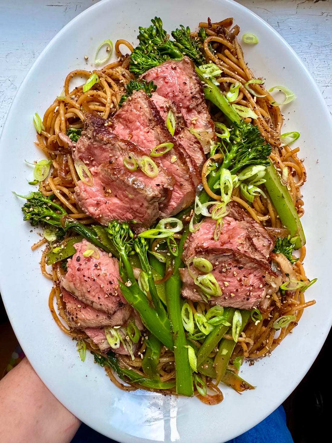 Supersize Me! Steak and peppercorn spaghetti (or noodles)A riff on Cantonese black pepper beef with added carbs! And brocc!Barrelling through a tableful of Cantonese delights with a pal this past weekend got me thinking about black pepper beef. I’d boarded the peppercorn train thanks to this devilled sauce, and I wanted MORE, which thankfully is the exact purpose of this Supersize Me! newsletter. Like a secret station at the end of a long, dark tunnel*, this is where we alight for a double dose of fun. I wanted to eat steak because, as mentioned, I’m in the market for treating myself. Not *too* much though, because: money. I actually wanted bavette but was unable to find any, so I ended up with a modest piece of sirloin instead. One with a good bit of marbled fat running through it, for that luxurious depth of flavour like rich salted butter and the greenest spring grass. ... Continue reading this post for free in the Substack app |