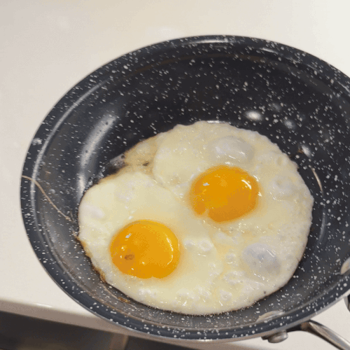 One of the best use scenarios for these pans! The scallion pancakes get crispy and chewy and delicious, and the egg cooks perfectly without sticking. I can eat this for pretty much any meal!