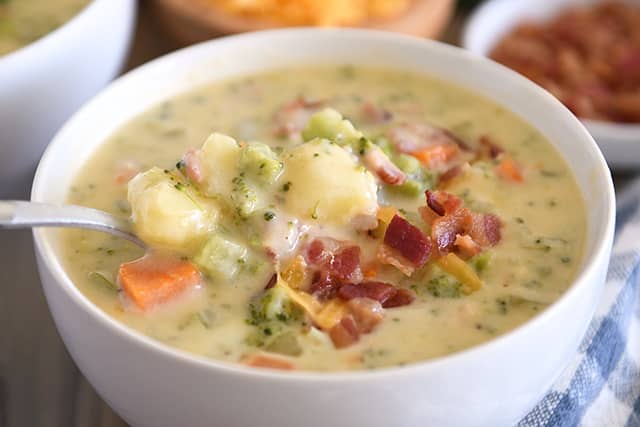 If you're feeling ambitious, these 1-hour breadsticks are delicious with this creamy soup. However, a lot of times, we skip homemade bread and sprinkle in crunchy oyster crackers or dip saltines in the soup. Simple and yummy!