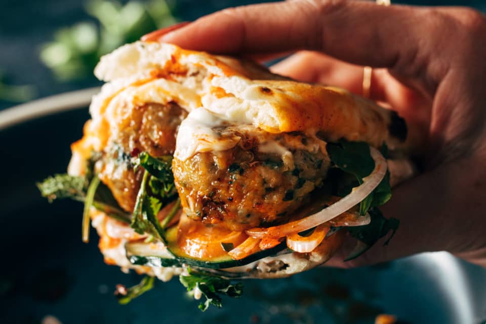 Aforementioned air fryer chicken gets max-flavored and nestled into tacos with the easiest, punchiest green sauce drizzled all over top. Love this one.