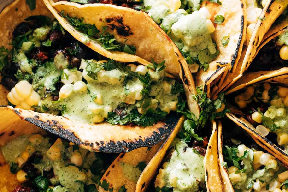 One of my go-to vegetarian meals. All you need is beans, greens, and some enchilada sauce for the filling, and then it's crowned with fresh corn, aji verde, and lots and lots of herbs. So hearty and SO good.