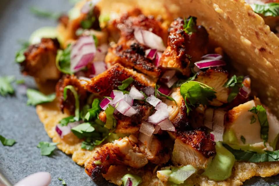 This is my easy but can-do-it-all dinner. We use this chicken on tacos (see below), in bowls, or just as the main event with some roasted veg and a good sauce.