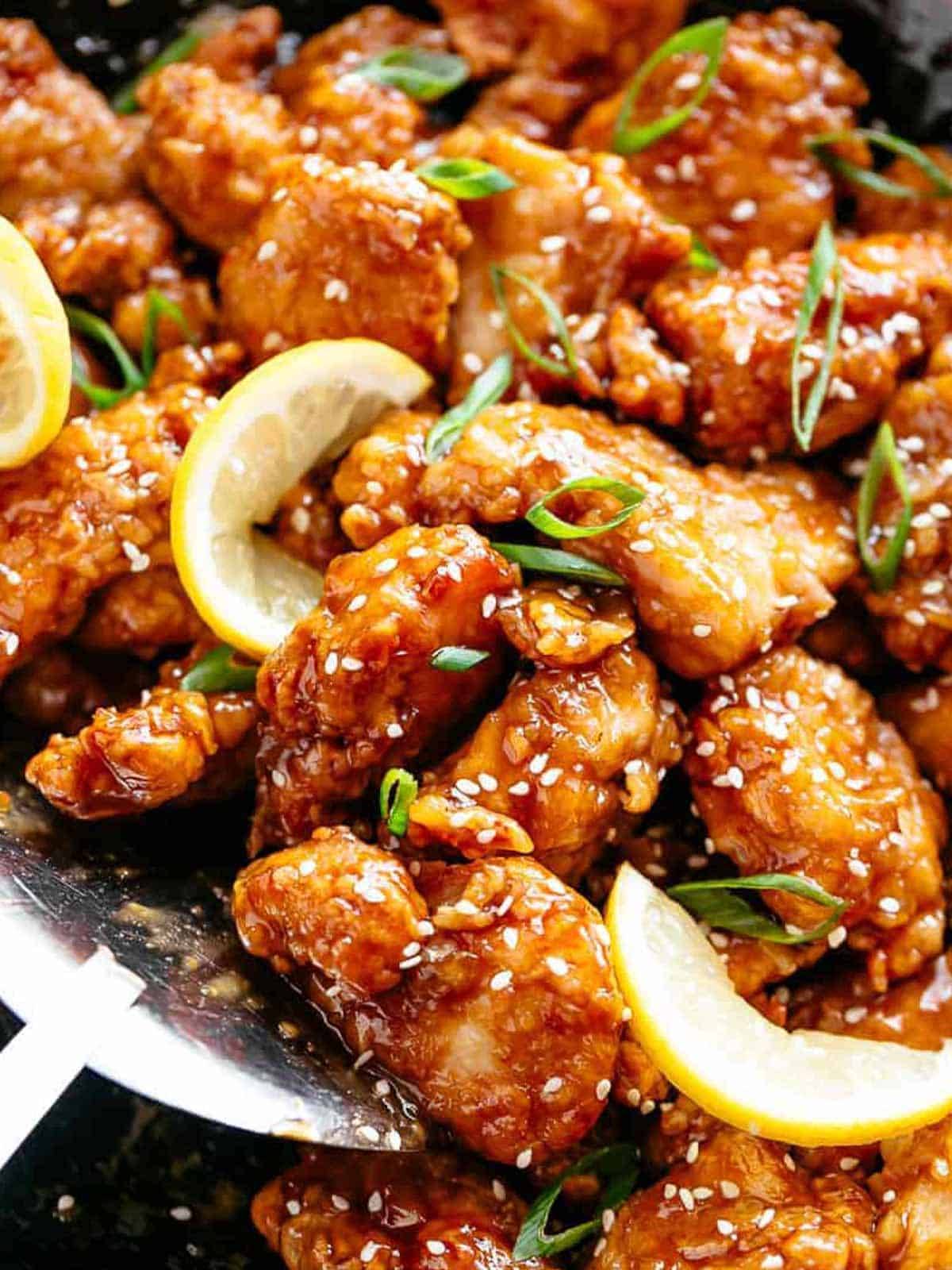 Lemon chicken became popular in North American Chinese restaurants in the 1970s as a lighter alternative to orange or sweet and sour chicken. The version served in China is often steamed or poached instead of fried.