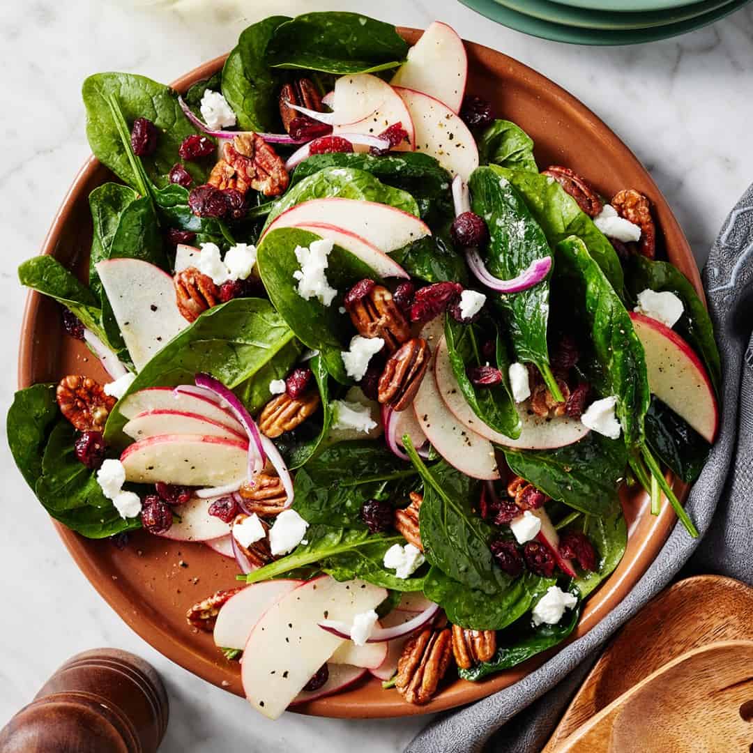 This simple salad will add a burst of freshness to your holiday table! It's perfect for fall, made with apples, dried cranberries, goat cheese, pecans, and a tangy apple cider vinegar dressing.