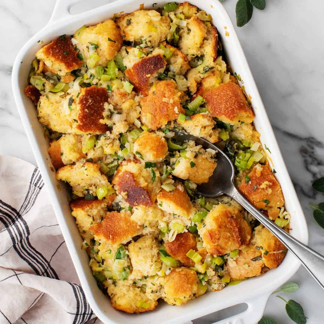 Made with savory leeks, celery, and tons of fresh herbs, this homemade stuffing will be the star of your holiday table. Reminder:It's our November cooking club recipe! Make the recipe and comment on the blog post to join in the fun.