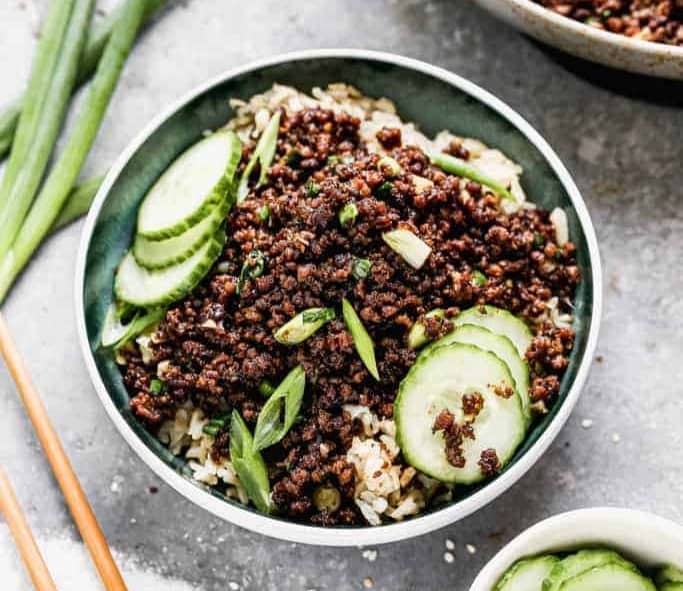 #7 Korean Ground Beef Bowls Made with basic pantry ingredients and served over rice, for and easy 30 minute meal everyone loves!