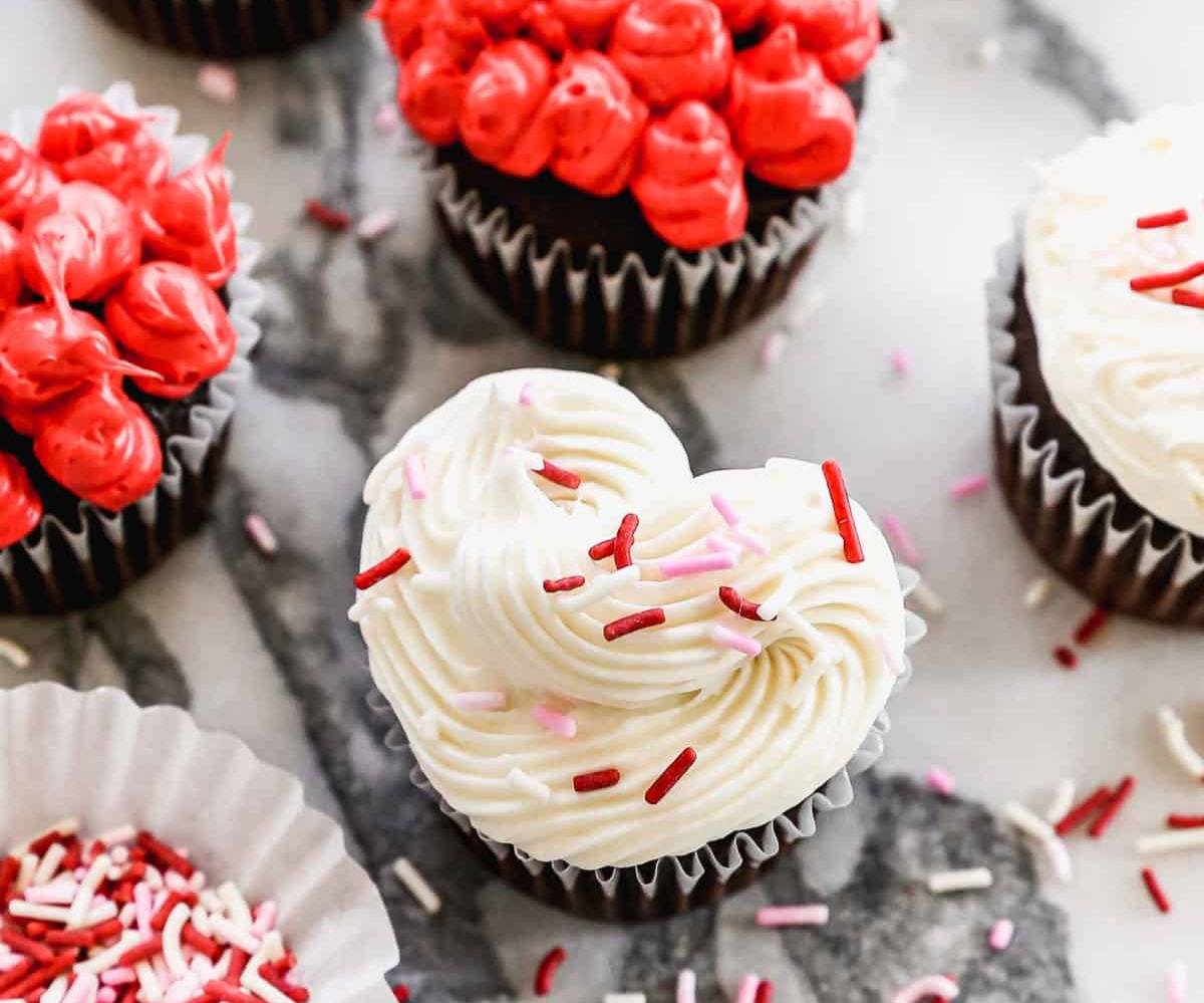 Valentine Cupcakes Valentine's Day Cookies Ham and Cheese Sliders Stromboli Chocolate Bundt Cake Biscuit Chicken Pot Pie Korean Ground Beef Bowls Dumpling Soup (our newest soup recipe!) #1 Valentine Cupcakes Anyone can make this fun recipe using a standard muffin pan and a small marble to bake them into a heart shape.