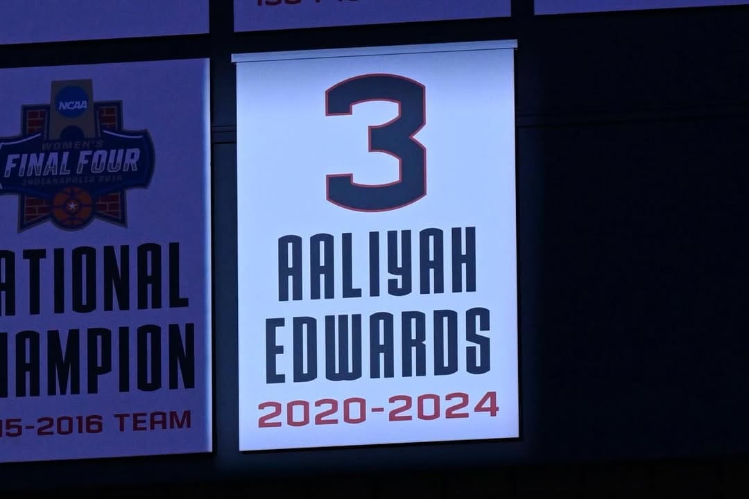 | | Finally, Aaliyah Edwards took her rightful place in the Huskies of Honor. Her No. 3 now hangs alongside 23 other legendary Huskies. With over 1,800 career points and more than 1,000 rebounds, the honor was truly well-deserved. | Surrounded by an arena packed with friends and fans who cherished every moment of her UConn journey from 2020–24, Edwards said, "To be up there forever, it truly means the world to me." And as she paused to collect her emotions a couple of times, Edwards' outfits added to the emotions, sending fans straight to their feels. | |