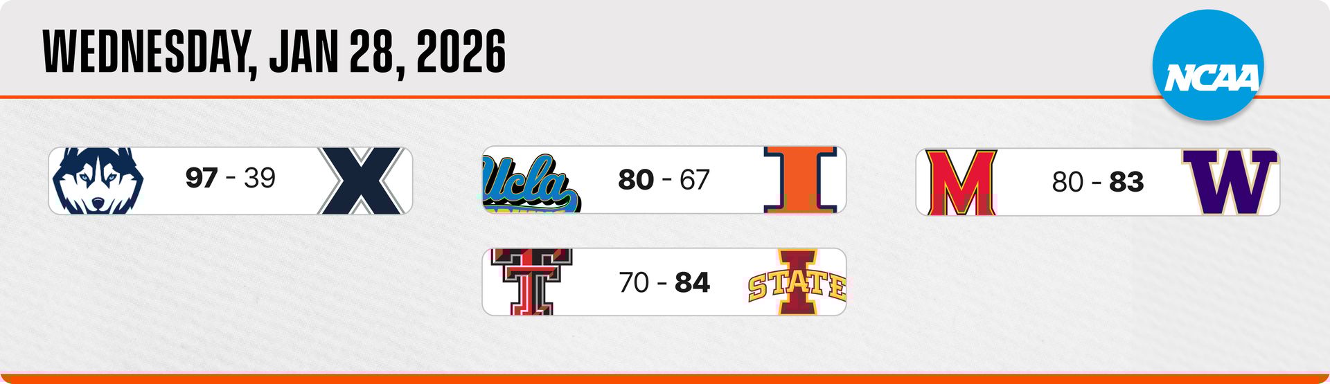 | | | It was another lopsided win for UConn, but Allie Ziebell made sure it was anything but ordinary. UCLA, led by Lauren Betts, had a much tougher night, scraping past Illinois in what became its closest win over an unranked opponent this season. Cyclones' resume got a timely lift with a win over Texas Tech. And while most of the night was defined by star performances, Maryland vs. Washington delivered double overtime chaos. Sayvia Sellers played the hero for the Huskies.