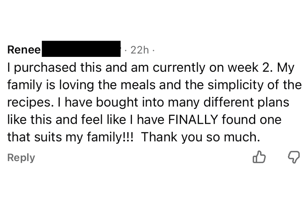 I've been using these meal plans for years, and last year I finally made them available to my audience because I realized how powerful they are when life feels chaotic. People love them. Check out this message I just got last week.