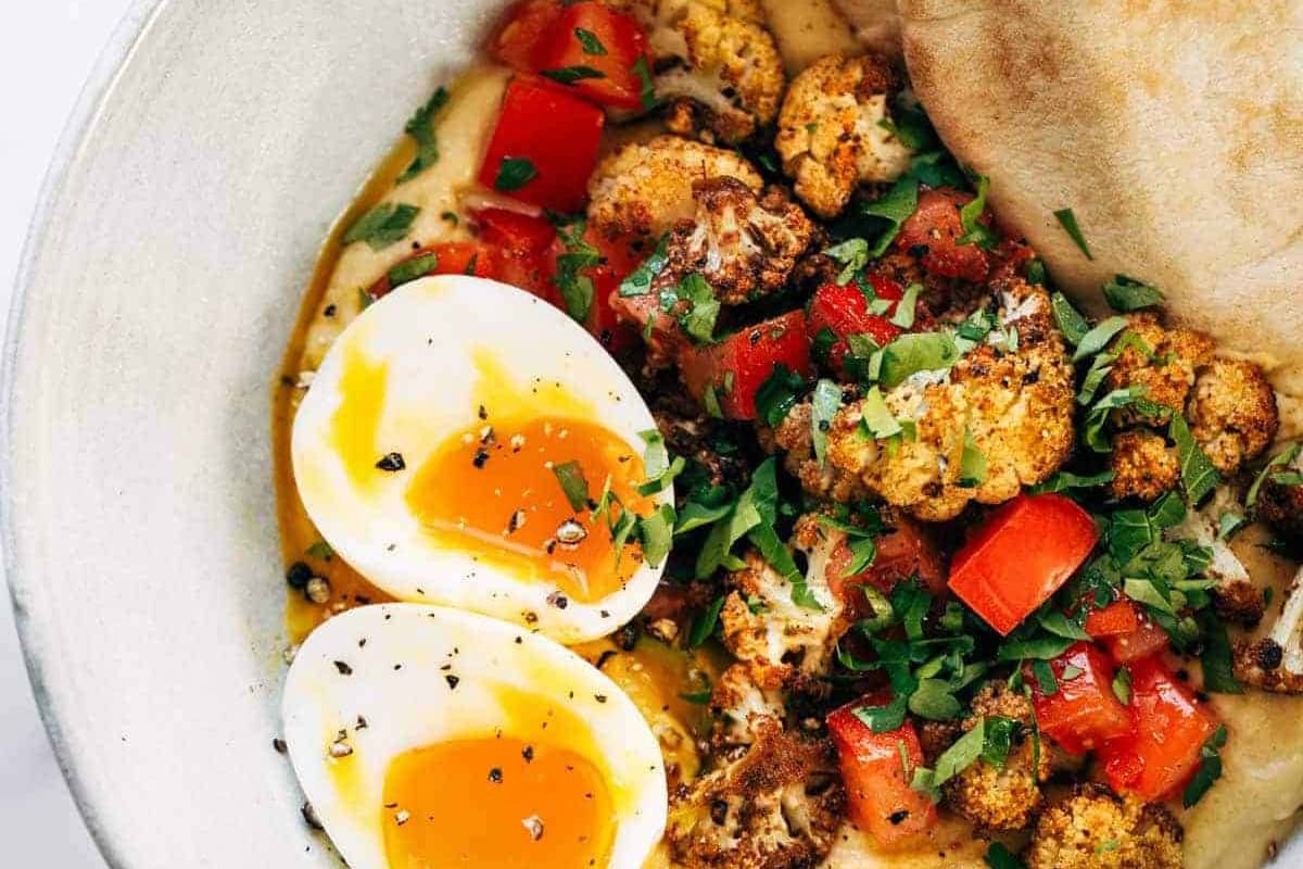 I promise this is the prettiest, happiest low-effort dinner you will make this month. Roast the cauli with some spices, and serve it up over a thick swoop of hummus! I also love this with rotisserie chicken.