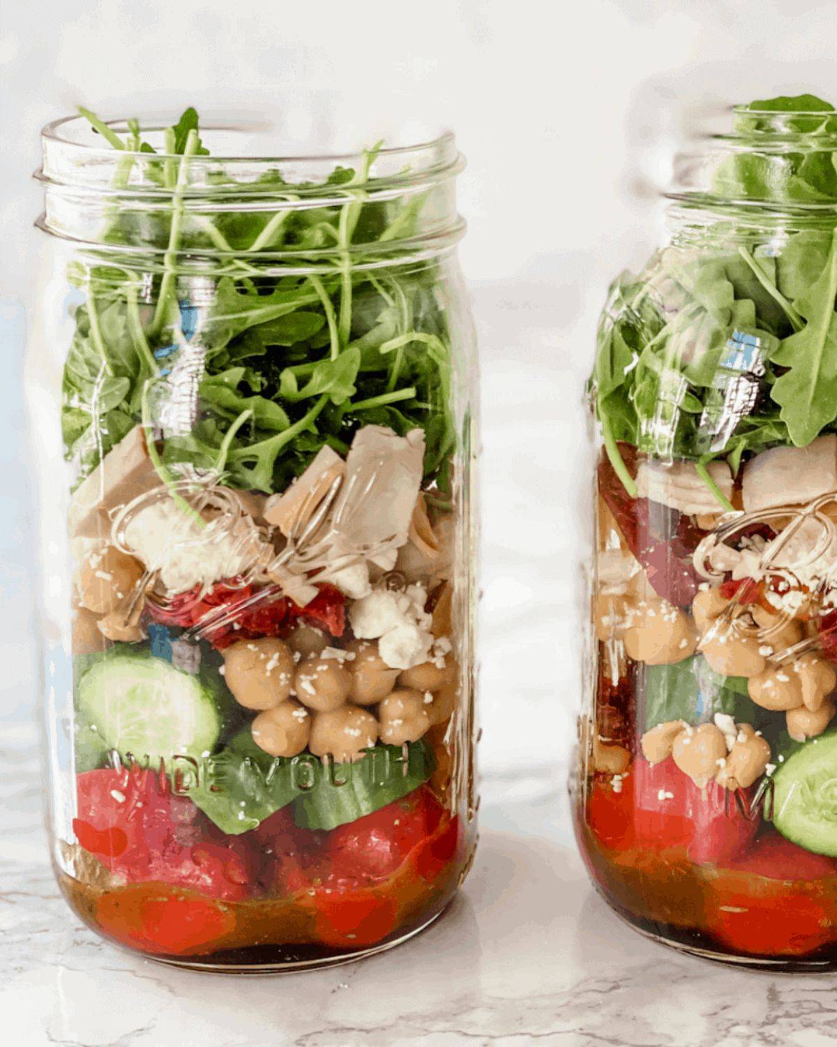 The key is layering: dressing on the bottom, hearty ingredients next, and greens on top so nothing gets soggy. See my full tutorial here. Here are 5 high-protein mason jar salads to make this week, plus a few easy ways to boost protein in any salad. | | Protein Power Mason Jar Salad This one is built specifically to keep you full. It's loaded with protein-rich ingredients and hearty veggies, making it perfect for lunch when you don't want to be hungry an hour later. | | | Greek Chicken Mason Jar Salad Juicy chicken, crisp veggies, and bold Greek flavors make this one a favorite. It's fresh, filling, and holds up beautifully for meal prep. | | | Steak Mason Jar Salad If salads never feel filling enough, this one changes that. Steak adds serious staying power and turns a salad into a satisfying, protein-packed meal. | | | Southwest Chicken Mason Jar Salad Bold flavors, protein-rich chicken, and hearty ingredients make this a great option when you want something filling and flavorful for lunch. | | | California Mason Jar Salad This salad combines lean turkey with chickpeas for a double protein boost. It's a great option when you want variety beyond chicken every day. | Easy Ways to Add More Protein to Any Salad If you want your salads to actually keep you full, protein is key. Here are some easy add-ins: - Grilled or rotisserie chicken