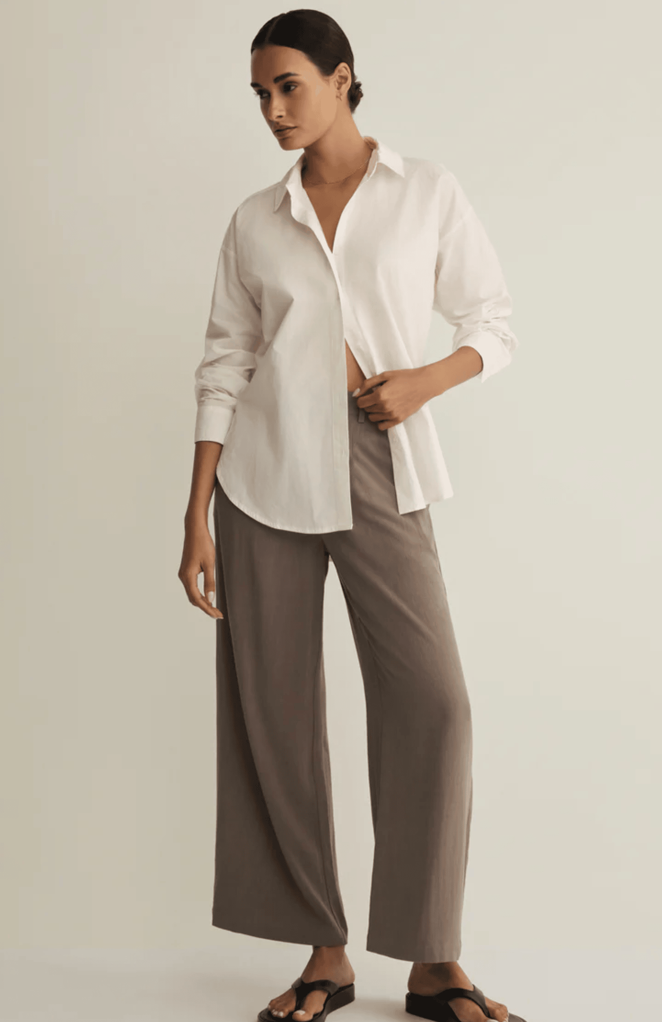Linen Pants: Button Front, Elastic Back Midweight textured linen meets an easy silhouette that feels relaxed yet elevated! Comfy, classy, easy-breezy. | | |