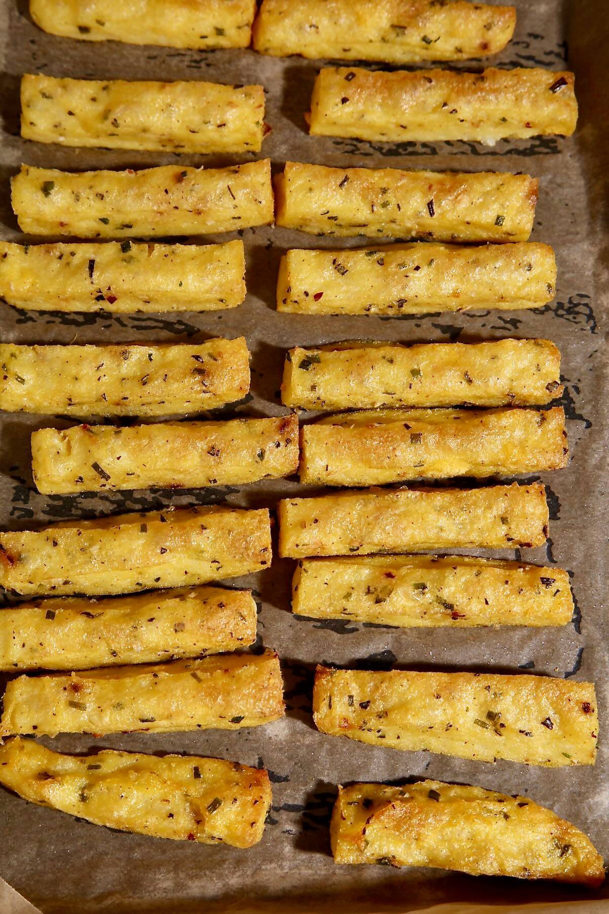 | | Homemade crispy vegan breadsticks, sprinkled with flavourings. Delicious! |