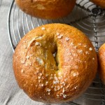 | Bagels, the best you've ever had! There is nothing like a fresh bagel, lightly toasted and stuffed with your favourite filling. But these homemade bagels are next level, they are so, so, much better than the store-bought varieties. | | If you haven't had a homemade bagel then you haven't experienced the true joy of a fresh, chewy bagel, with a wonderfully light and fluffy interior, and garnished with a plentiful sprinkle of salt crystals. These are so good there will be no turning back! | | If you want to see the true comparison check out my 'Does it compare?' series on Instagram. In episode 5 I compare my bagels with the standard shop bought variety, New York Bagel Company original bagels. I'm very happy to report that mine compared extremely favourably, and way outshone the NYC Bagel company one. The shop bought one was dry, uninspiring, contained twice as many ingredients and had a 'may contain' for sesame. | | As it's almost impossible to buy bagels that don't contain traces or 'may contain' traces of sesame, I have gotten into the habit of making my own. I make a batch and then we have the best lunch, with the extras stored in the freezer for packed lunches. I find that if you defrost a frozen bagel in the microwave for 30 seconds and then toast, you have a perfectly fresh bagel to make a superior lunch. | | Homemade bagel filled with dairy-free cream cheese | | | I probably make bagels every three or four weeks, and they never last long in this house! I realised that whilst I have plenty of different flavours of bagels on my blog, the original bagel recipe is way out of date and needed reviewing. So here it is, the perfect bagel recipe, and I guarantee they will be the best you've ever had! Save this recipe, and your family will thank you!! | | You may think that making bagels is a long, convoluted process, but's it's pretty straightforward and you can easily make a batch in time for lunch. | Easy Homemade Bagels – The Only Recipe You'll Ever Need Makes 5 (easily doubled or quadrupled if you want to make more) - 250 g strong bread flour