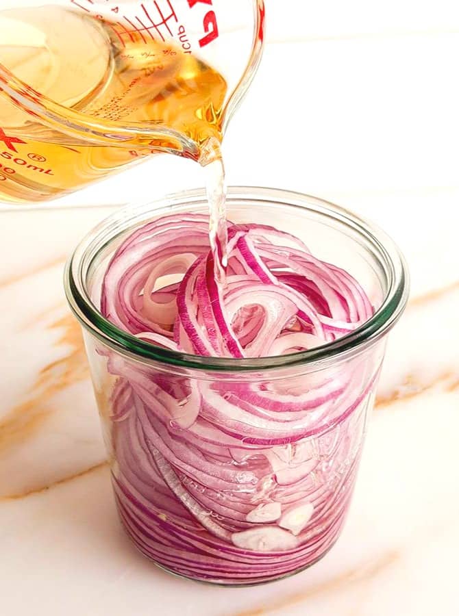 Seriously one of the simplest, greatest condiments you can keep on hand. They level up a pita wrap filled with marinated chicken or anything else. Or just alongside on the plate. It's that tang, that sour, that red onion goodness. Ready in 30 minutes.