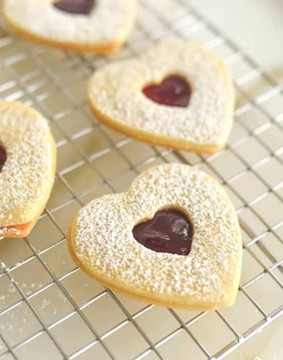 Grab a couple of heart cutters and a jar of strawberry or raspberry jam. Plus: Rose Water! Add a splash to the jam and level these beautiful cookies up a notch with that gentle flavor. It pairs so perfectly with red berry. Gift some of these to your habibis and watch them glow.