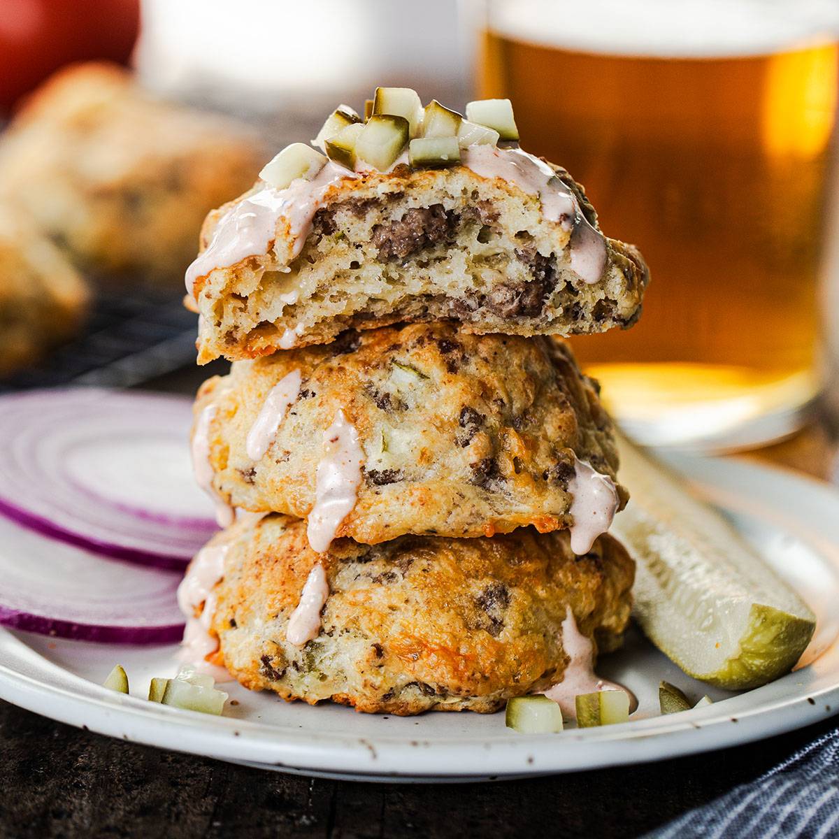 | Hi reader, Gluten Free Cheeseburger Bombs with Special Sauce are my new favorite food. Cheesy, soft, and chewy (a rare texture in the gluten-free world!), they're just as good hot and fresh from the oven as they are reheated. I just polished one off after a quick 25-second spin in the microwave! If you tried and loved my Gluten Free Breakfast Bombs, these are the dinner equivalent, though they're great to have on hand in the fridge for easy lunches and after-school snacks. Anytime is a good time for these irresistible cheeseburger bombs. They are WOW-level-delicious!