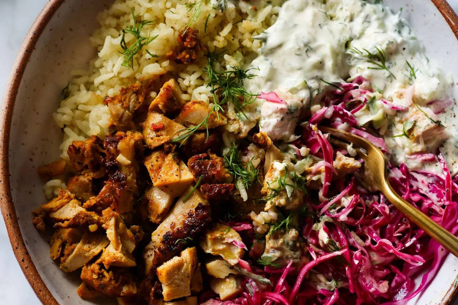 Another Trader Joe's buy coming in clutch! I've been pairing their Chicken Shawarma with lemony rice, creamy feta, and a quick slaw. It is SO good, and the perfect easy meal for a weeknight.