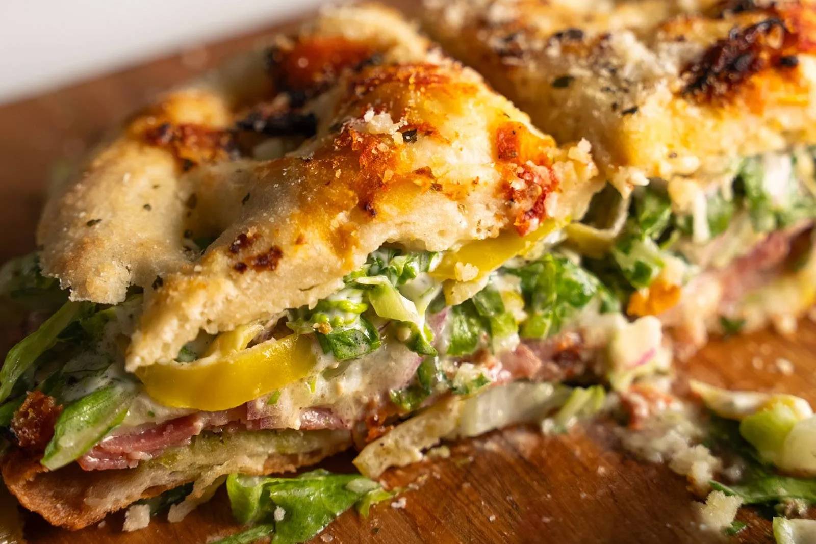 Like a big crunchy Italian salad, but stuffed into my favorite Trader Joe's focaccia. I think I could eat this for lunch and dinner every day right now. 😮💨
