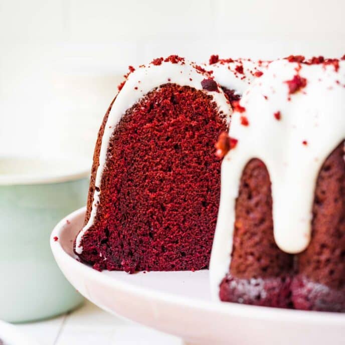 This vibrant cake with cream cheese frosting makes a beautiful dessert for the holiday! Using sour cream and buttermilk in the cake batter keeps the cake wonderfully moist.