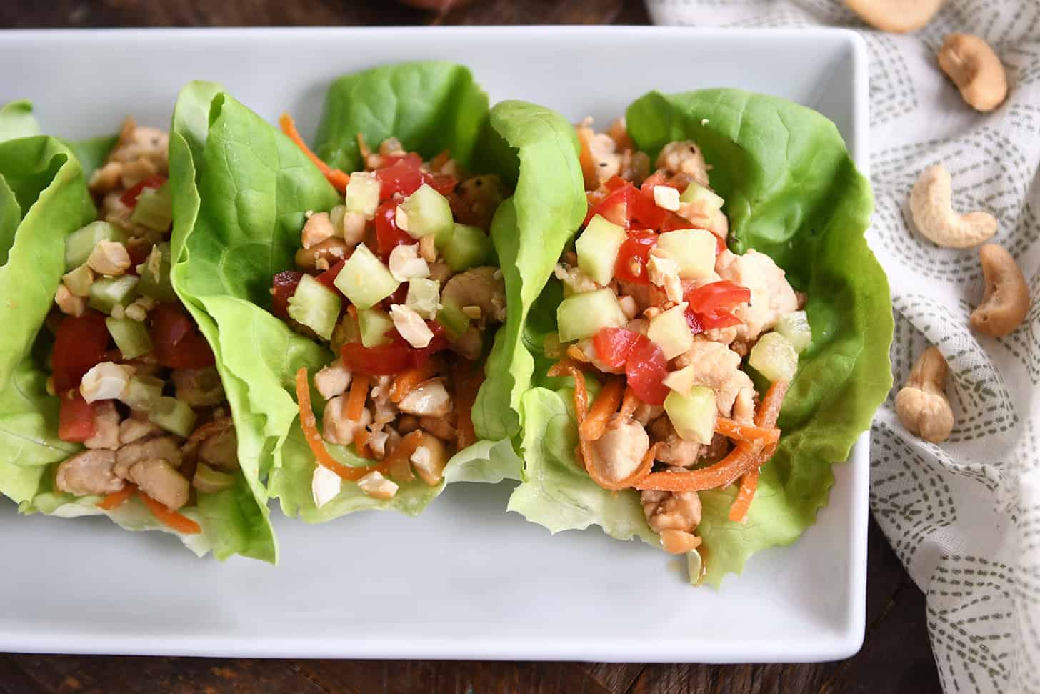 The chicken filling for these wraps can be prepped several days in advance. The carrots lose a bit of their vibrant color, but the flavor is still yummy. For a heartier meal, you can add rice to the lettuce wraps.