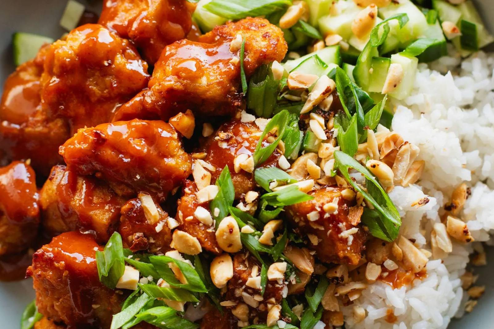 The shower of herbs on top of this one just really gets me. ☀️ PLUS the crispy golden tofu bathed in a peanut gochujang sauce that is spicy, sweet, tangy, and so, so delicious.