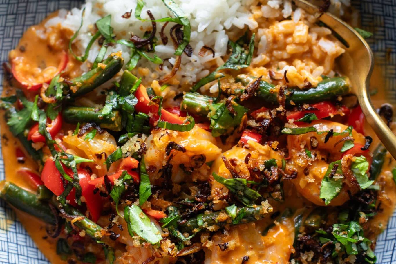 This was a favorite from our SOS series last year! Just an easy but EXTREMELY GOOD curry, thanks to those shrimp, herbs, and the shallot crispies all over top!