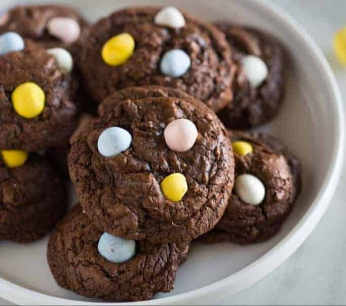Chocolate Cadbury Egg Cookies Baked Ham Twice Baked Potatoes Yellow Rice Radicchio Salad Deviled Eggs Easy Carrot Cake Beef Tenderloin #1 Chocolate Cadbury Egg Cookies These make the perfect Easter dessert your family will love!