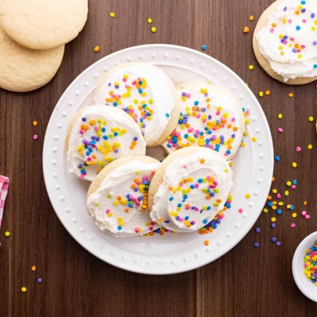 These tender sugar cookies will remind you of a nostalgic grocery store favorite, and the colorful frosting and sprinkles make them perfect for spring.