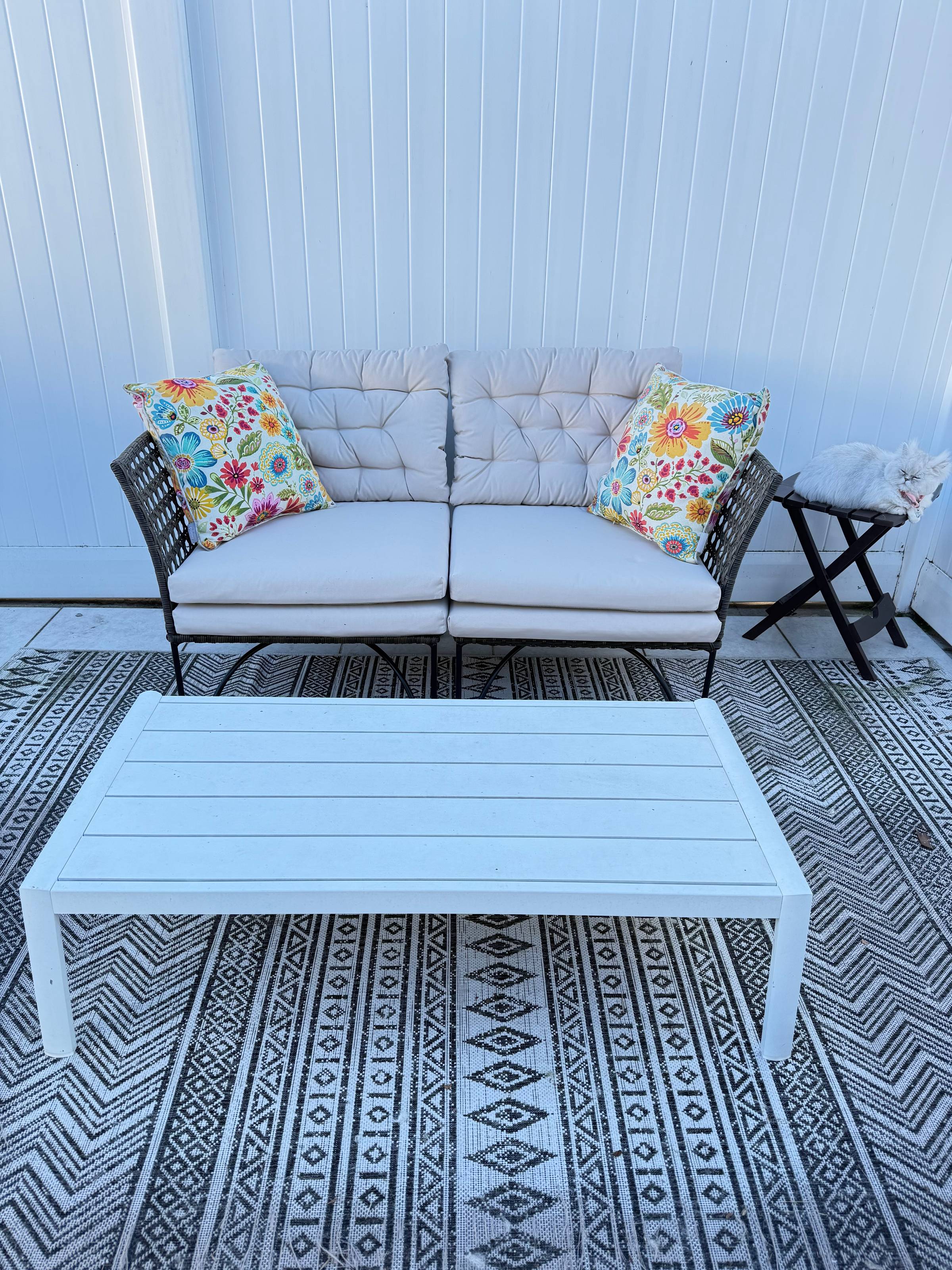 I just picked up this loveseat for my patio and it's so cute, comfy, and perfect for our space & it matched with the existing items. I don't care if you spend $300 or $3000 on patio furniture, it's trashed & gross after 3ish years so I go the budget route π