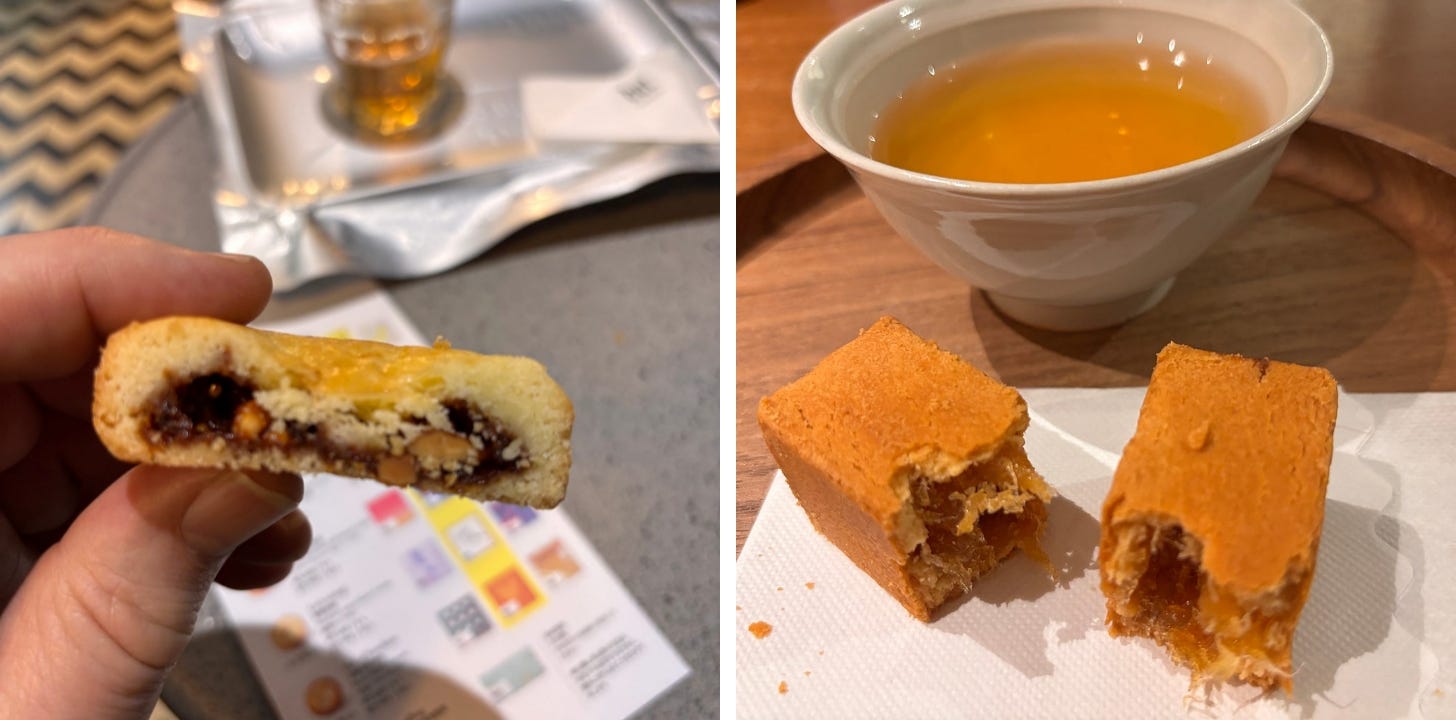 The cookie (above) was filled with candied longan and made with Échiré French butter. It was so good, I bought two boxes. Fortunately I could redeem myself with Sunny Hills (I was worried they might have posted my picture for the employees, to look out for the freeloader) when, a few days later, I found myself in the food court at 101 Taipei Tower and picked up (i.e., bought) two boxes of pineapple and apple cakes at the Sunny Hills kiosk there. So hopefully I’m off any “watch” list. 😅
