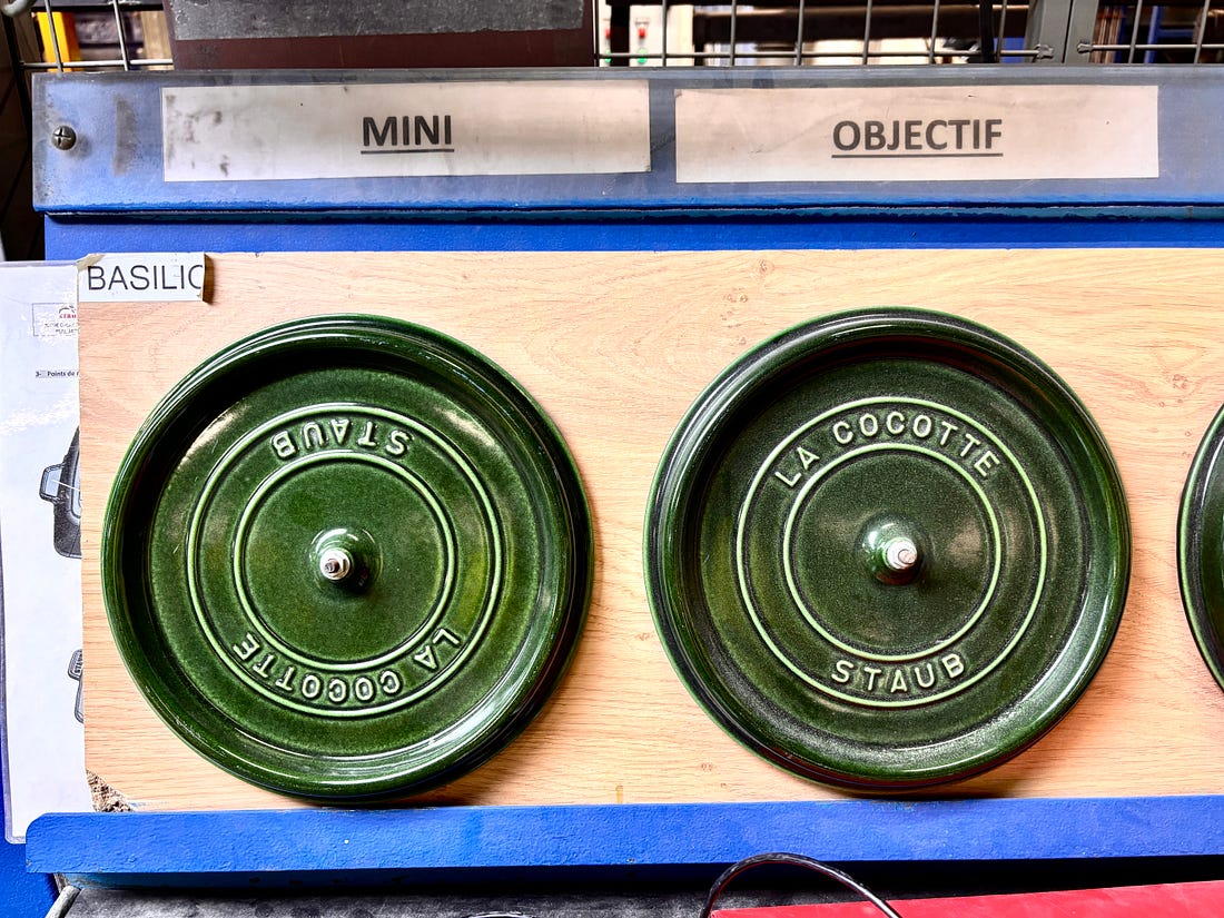 I love going to factories, especially ones that make cookware. In the past I’ve visited All-Clad, Le Creuset, and Mauviel, and was the first “outsider” to be allowed inside the KitchenAid factory. So I was thrilled when I was invited with some friends, which included Deb of the smitten kitchen digest, Jane Bertch, and Irene Wong, to visit Staub, one of my favorite French brands, makers of the iconic enameled cast-iron pots and casseroles.