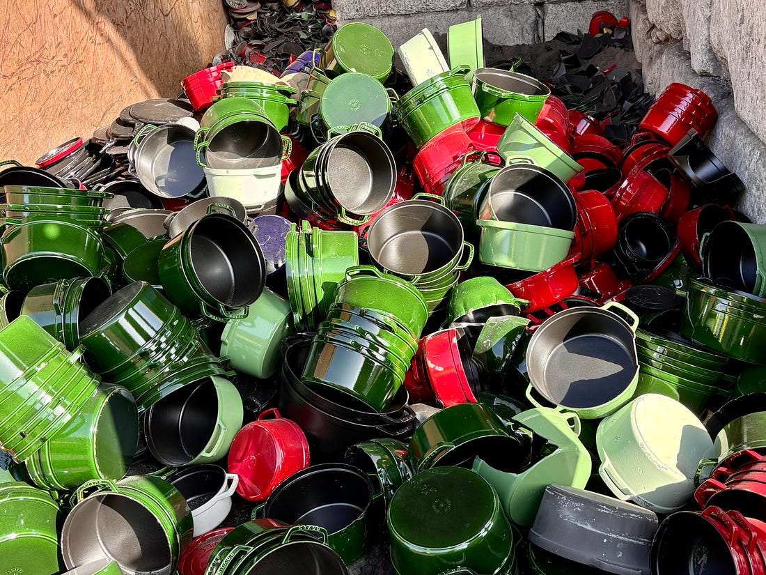 Anything that’s not perfect gets tossed in the reject pile, to be remelted (and recycled) into new pots.