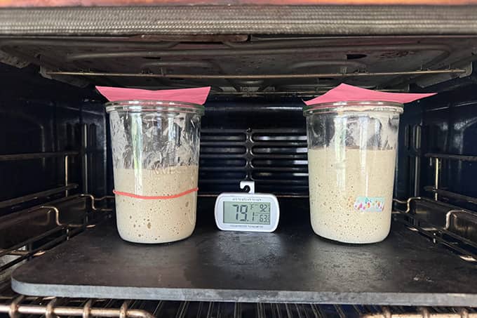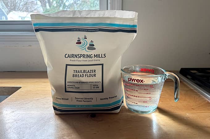 I built two starters this week, both using Cairnspring Mills Trailblazer bread flour and water, and within two days I saw action — rising! — and by day four, the starters were doubling in a timely manner. Warmth + good flour is a foolproof formula for sourdough-starter-from-scratch success.