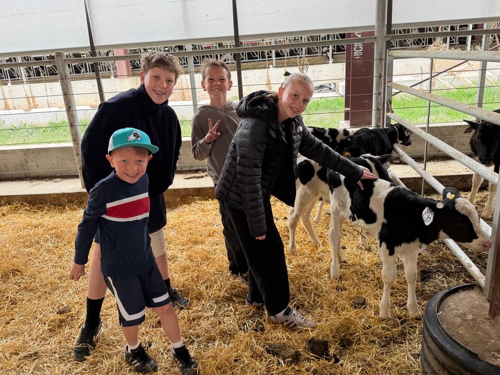 We got to see their robotic milking system in action (which was fascinating- they track so much data on each cow and the milk quality). We watched a cow being milked, got to pet baby calves, and finished with homemade cheese from the farm.