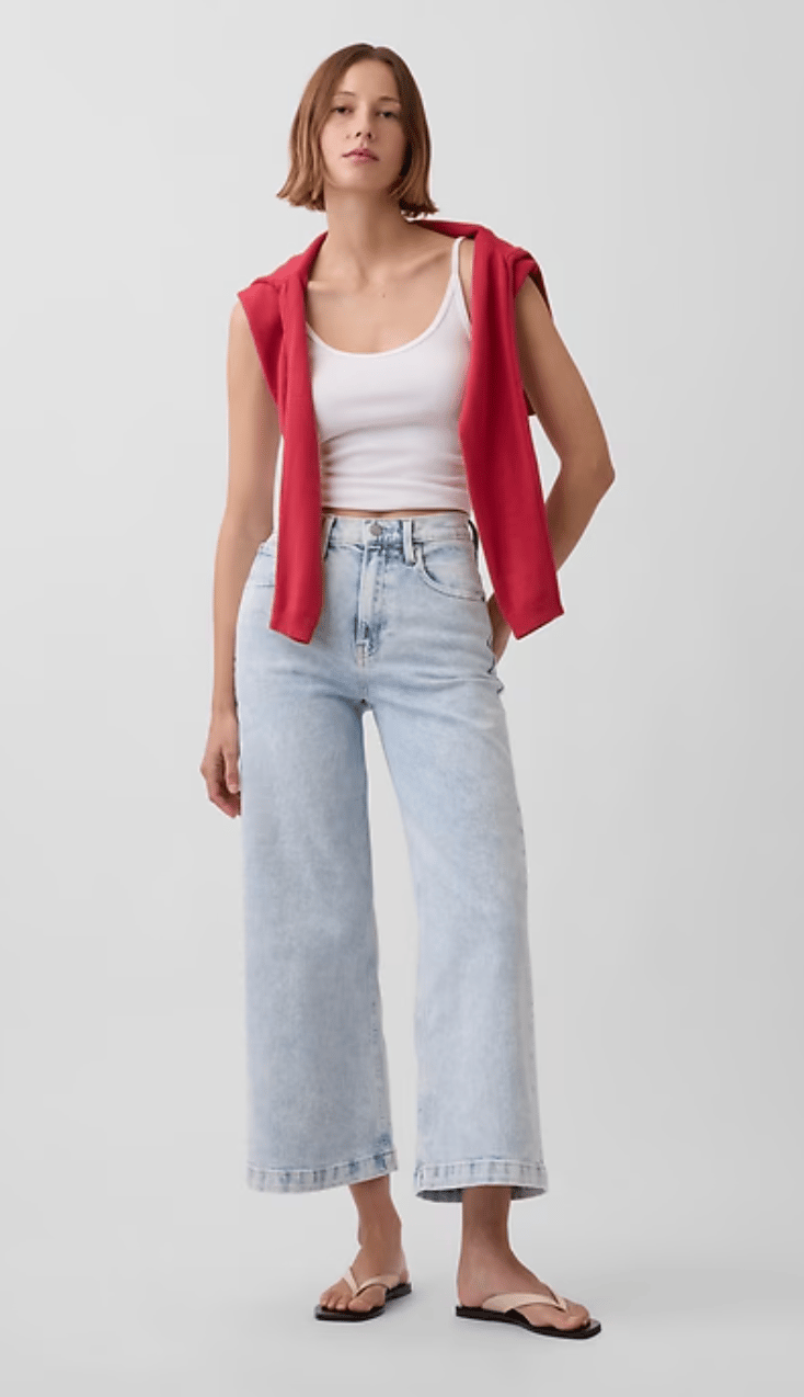 The 80s called, acid wash is back. These wide leg crop jeans are on trend, on SALE at a really great price, and comfy! Also 20+ other washes from dark to light to choose from.