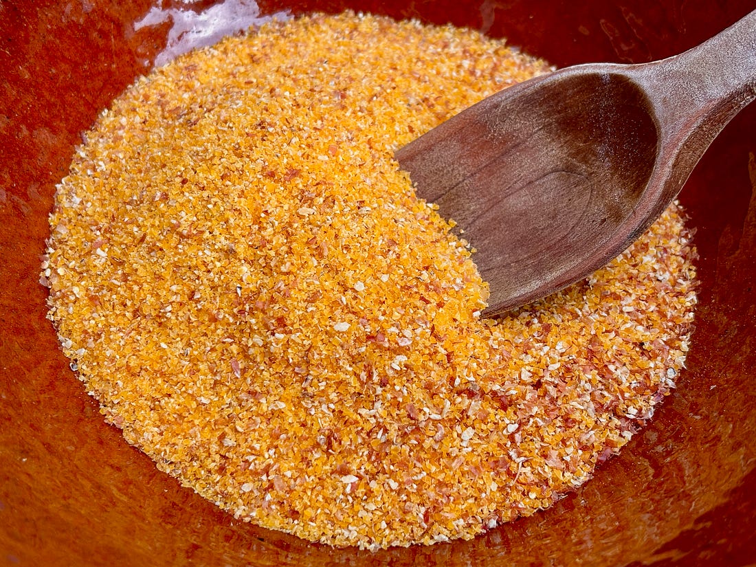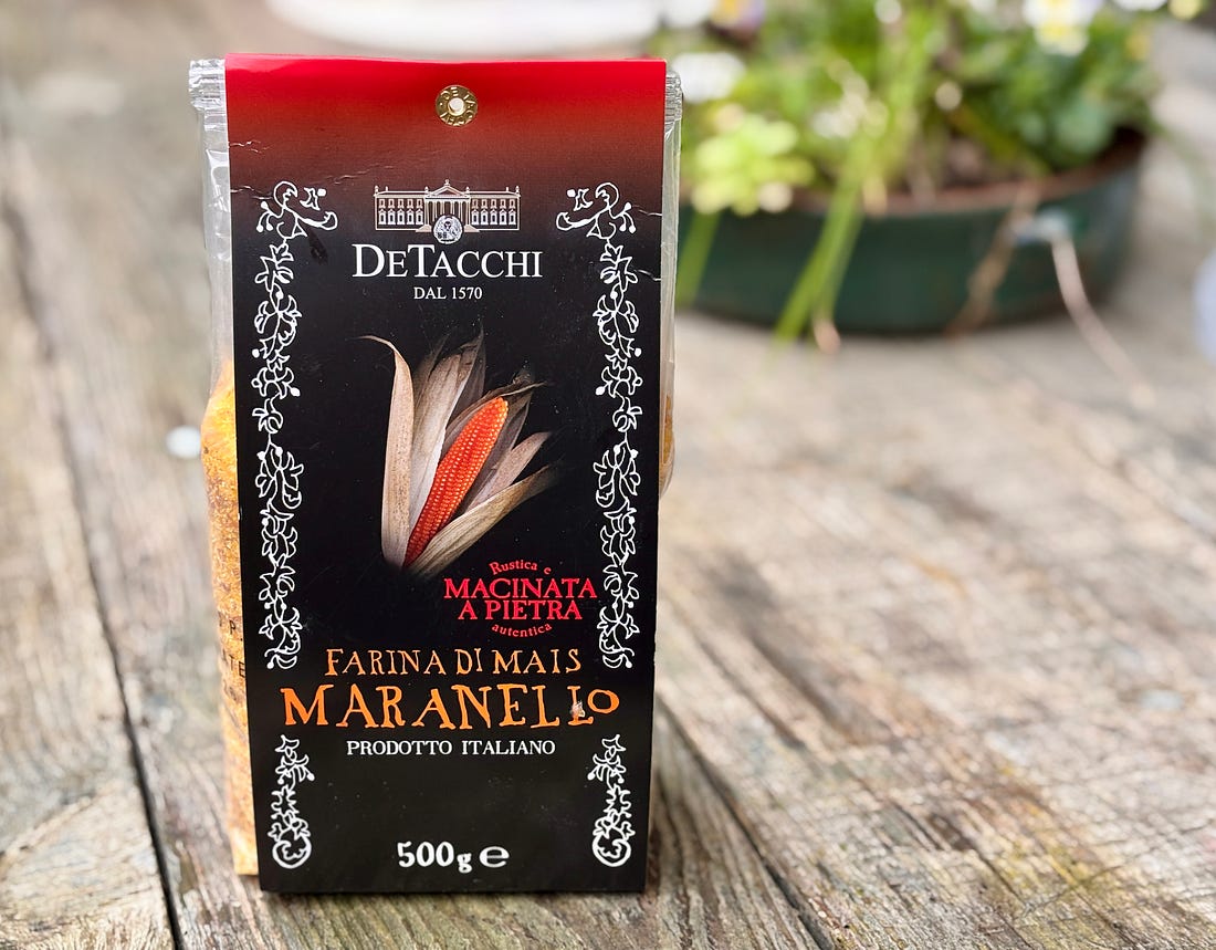 If you want to take your polenta to the next level, seek out stone-ground polenta. Stone-ground polenta (like stone-ground cornmeal) includes the whole grain, and contains the germ and the bran. It also has retains more of its flavor during grinding since the stones grinding the corn don’t heat it up, which can diminish its flavor. But I also like the irregularity of it. It looks like real corn, not like powder. I’ve been cooking polenta for years, stirring it on the stovetop, but recently I remembered this technique, which was introduced in the pre-internet days by the great Paula Wolfert. The recipe was in her book, Mediterranean Grains & Greens, a treatise I sadly had to leave behind in the States, but she attributed to a recipe on the back of a package of Golden Pheasant polenta, although the California-based company no longer seems to be in business. ๐ I’d made it way-back-when, but for whatever reason, I continued making polenta the traditional way. It reminds me of a quote from Judy Rodgers in the Zuni Cafรฉ Cookbook, something along the lines of finding, and sticking to, a harder way of doing something. For better or for worse, that’s sometimes as I operate. Old habits die hard, I suppose. ... Continue reading this post for free in the Substack app