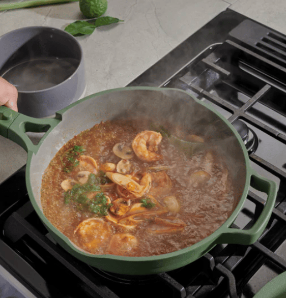 OurPlace 2.0 comes with a lid & steamer basket. Great for eggs, fish, seafood, chicken or anything you want to cook without adding oil to the pan. 6 color choices.