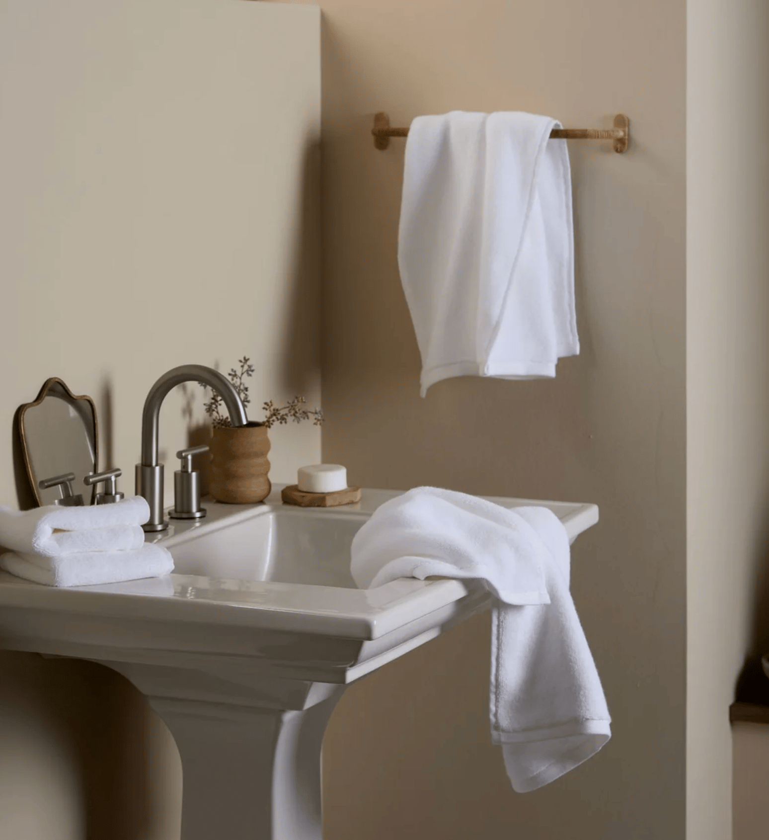 My favorite thick, plush, 100% cotton absorbent towels that dry you - not just move the water around. You get what you pay for, these last for years and years. Wash and dry up fluffy, soft, perfect. Tip - If you want a hotel style towel, get the bath sheet, so good. Especially for tall/bigger people it's big and luxurious.