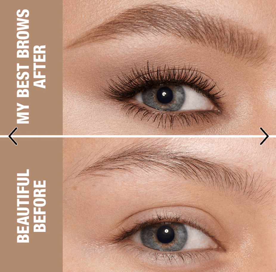 Creamy texture not chalky, lasts until you take it off, great shades if you're light to medium (like this model) and don't want your brows to be too dark - just defined. I use Soft Brown. All companies can do dark but for lighter to medium, so they don't read too ashy, too gray, too warm/orange - it's an art and they nailed this.